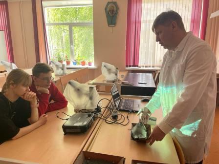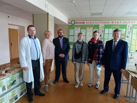 26 апреля 2025 года на биологическом факультете прошел День открытых дверей. В мероприятии приняли участие приглашенные гости – представители организаций заказчиков-кадров: директор гимназии г. Ветка Сушко Геннадий Александрович и заместитель директора по идеологической работе Гомельского опытного лесхоза Старовойтова Рита Петровна. В соответствии с программой мероприятия состоялась встреча абитуриентов с руководством и преподавателями факультета, экскурсия по музею-лаборатории «Природа Беларуси», а также прошли мастер-классы «Морфология рыб» (доцент Лебедев Н.А.), «Экскурс в современные молекулярно-генетические технологии в биологии» (ст. преподаватель Зятьков С.А.), «Занимательные опыты по химии» (ст. преподаватель Пырх О.В.), «Основы древесиноведения» (доцент Колодий П.В.).