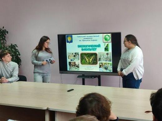 Продолжается активная профориентационная работа s_admin 21.10.2025 На биологическом факультете продолжается активная профориентационная работа. Студентки Антонина Адашкевич и Марченко Дарья провели беседу с учащимися 11-х классов гимназии №71 г. Гомеля. Фотогалерея Теги Образование Профориентация