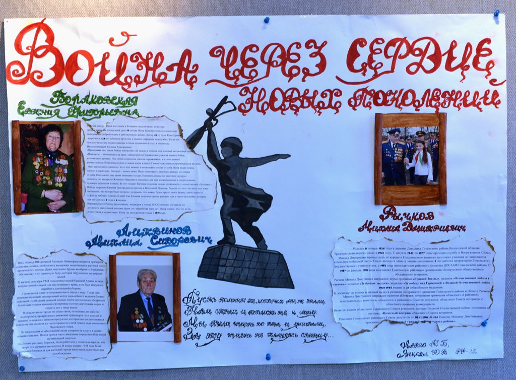 应当指出的是,像这样的展览项目非常重要,因为它们不仅广播了战争年代的事件的记忆,了解戈梅利的历史,而且还以地球生命的名义培养了对这项壮举的感激之情。展览的参观者,由于来自不同系的学生和老师展示的展览,得以进入战争年代的气氛,充满了深刻的情感和经验。