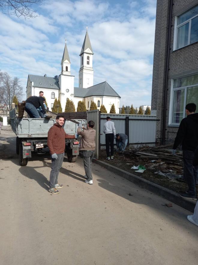 Чистый четверг - 2026 biofac_admin 20.03.2026 В рамках акции "Чистый четверг" студенты биологического факультета навели порядок во дворе корпуса 1 убрав ветки деревьев, доски и строительный мусор. Пусть будет наш любимый университет уютней в предверии весны! Фотогалерея Теги Акции и проекты Волонтёрство